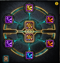 护石与符文可以理解为新的装备槽。如上图所示,有两个护石槽,每个护石关联三个符文。护石有5种,符文有5种颜色,每个护石会有三种不同颜色的符文槽,也就是C(5,3)=10种颜色组合。