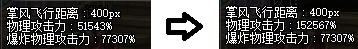 连斩和花散各增加了4段攻击,但减少了攻击间隔时间,总时间变化不大,伤害约提高26.2%,攻击范围明显增大了。怪物为非建筑怪时,可以推着一起向前移动。