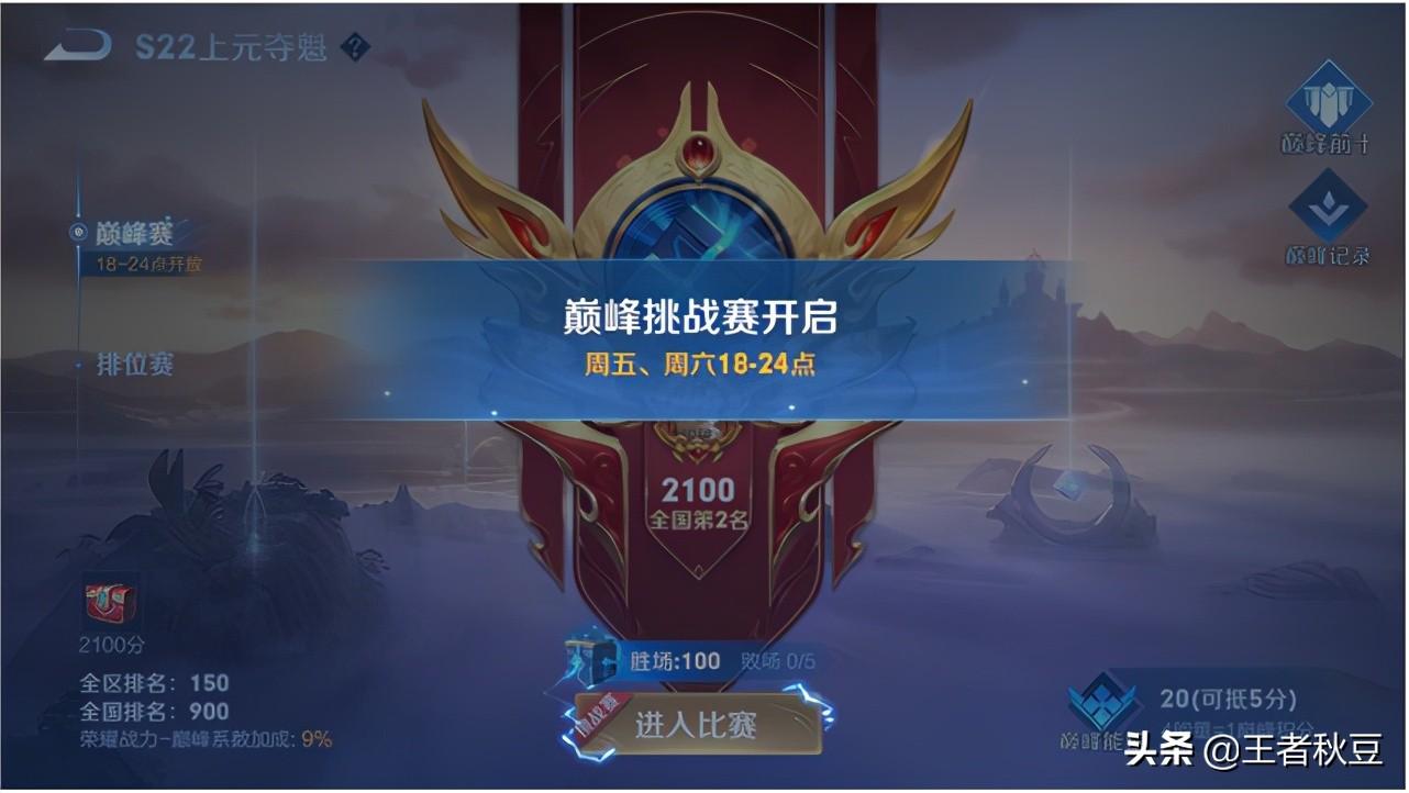 从之前每天晚上6点提前到每天中午12点,现在白天也可以打巅峰赛了。按照王者荣耀50%的排位胜场机制,只要场次够多,基本都能上分。因此,新赛季,大部分巅峰赛玩家的分数将会到达1800分左右。而2100分以上的时间则不变,高手更多还是在晚上打。