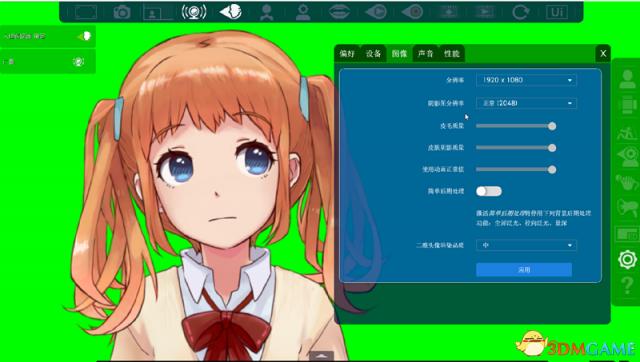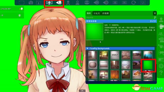 首先要在背景设置中找到绿幕布然后应用,同时上面的脸部追踪和广播信号也要开,不然软件就没有任何用。