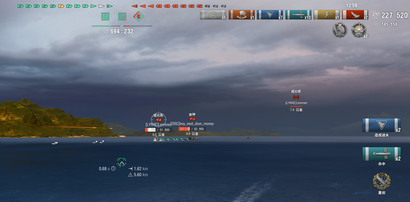 在能使自己活下来的情况下,F3的高雷伤高命中率能达到很恐怖的做伤害效果。我的F3命中率10%,高于哈兰窄雷9%,低于岳阳深水雷12%,远高于其他4%-6%的臭鱼烂虾。
