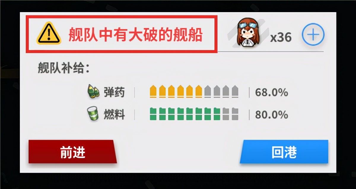 1、队伍中有大破(红血)舰娘时,不要派她出征!先修好再出击!