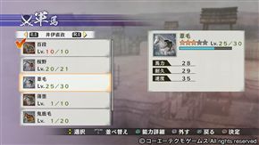 | 早川殿 | 我方的能力值上升,成功后回复自身无双槽。 |