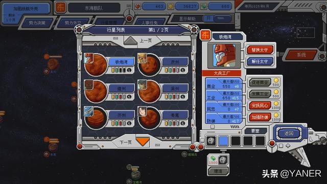 游戏中金钱和物资比较重要,两者都是来自于我方区域的行星,通过行星管理来获得。