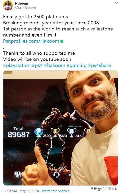 近日国外一名名为Hakoom的游戏玩家就发文庆祝,自2008年到现在终于肝到2500个白金奖杯,成为世界上第一个达到此数量里程碑的人。黑眼圈是标配,秃顶啥的都是正常操作,胡子还得略带发白,这才是真大师!!!