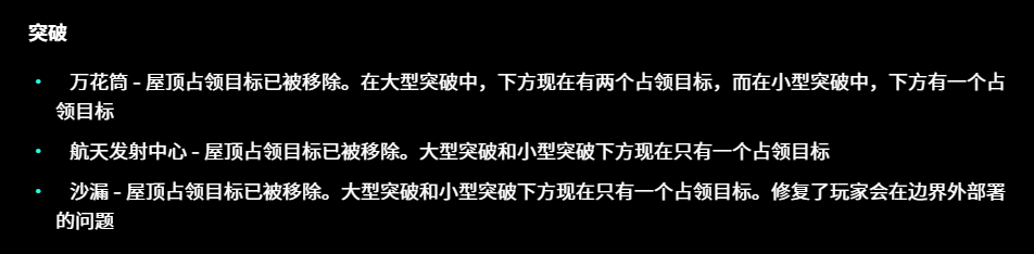 在我看来,效果最显著的一项改动,无疑是突破模式中据点的调整。在初上线之时,突破模式有着一些让人百思不得其解的据点设置——比如说沙漏最后一个战区的楼顶。进攻方只能通过电梯和隔壁楼顶缆绳来抵达这里,防御方可以大摇大摆地在楼顶布置空投载具,并依靠成建制的防空兵将进攻方仅有的攻击手段彻底瓦解。