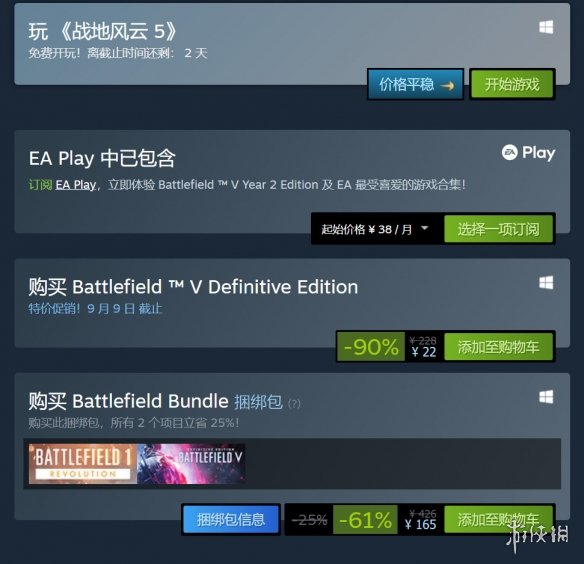 战地5在哪个平台购买最便宜(战地5终极版Steam打折仅需22元)