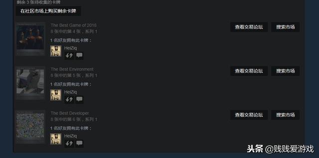 一个小建议:如果不是合卡大佬的话建议只用steam或者HB赠送的游戏来合卡,因为赠送的游戏的卡牌往往价格便宜,大多在0.1元之内,几毛钱就可以合卡升级,非常合算!
