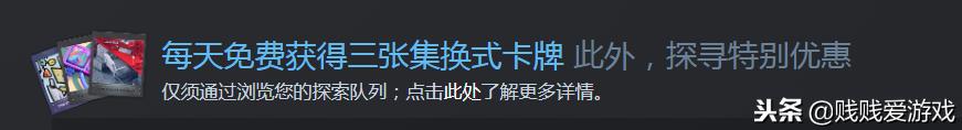 冬季促销跟夏季促销steam也会推出促销主题的集换式卡牌,获得方式为浏览队列,每天可以获得3张集换式卡牌