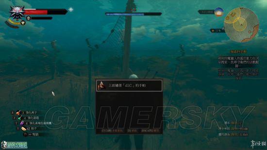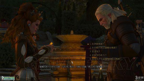 金鱼谜题:抵达湖边后潜入水中,开启感官能力,查找若干个目标后即可找到金鱼,不过金鱼被人抓走,杰洛特只得上岸把金鱼抢走,并且粗鲁的拿走了里面的钥匙。