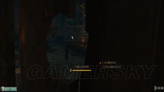 开启感官能力后在墙壁边可以找到一扇机关门,但是需要一些途径来打开。继续开启感官能力,可以在周围的墙壁上找到四个凸起的机关,用弩箭分别射击这四个机关,就能够解开门上的石条,从而进入下一个区域。