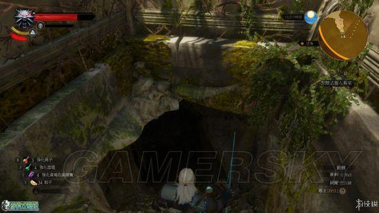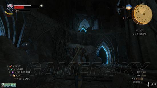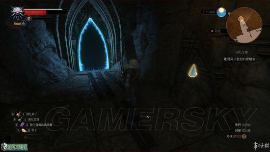 抵达任务标示所在之后,潜入水中,可以看到遗迹中的传送门,通过传送门之后就可以抵达一个地下区域了,实验室就在这里。进入实验室后需要注意地上的尖刺机关,趁机关消失时通过。进入后直走的尽头一个箱子里可以找到一把银剑,不过属性很一般。