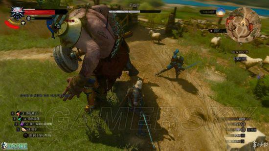 抵达陶森特后,杰洛特正在欣赏这里曼妙的景色,前方突然发生了状况,原来是一名骑士正在独自挑战一个巨人。眼见他不敌,三人立刻下马协助。这里也可以当成一次小型的BOSS战斗,用来让玩家们找回一些感觉的。