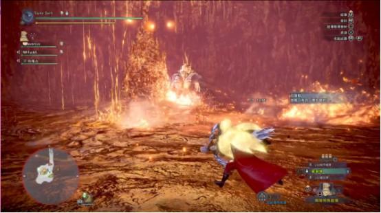 半站立状态开始进行环状的150°喷火吐息,有持续热伤害。