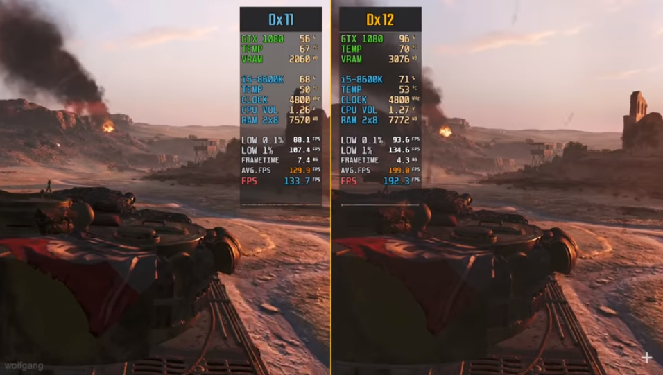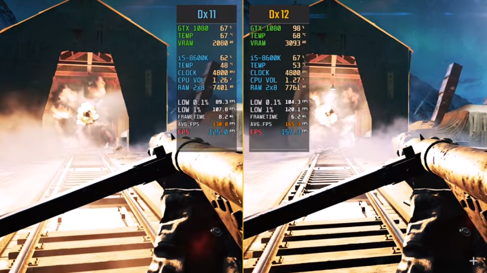 近日《战地5》进行了一次底层升级,相较其他技术上的升级,玩家更关心最新加入的DX12 API技术与之前DX 11相比,在游戏帧数上的提升究竟有多大。很多玩家第一时间进行了试玩,大部分人表示更新DX12后,游戏帧数有很大的提升。