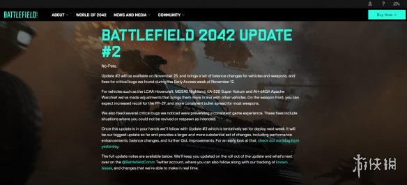 昨天官方还在博客中写道:“我们的全球发行才过了几天,就已经有数百万人在玩《战地2042》了,我们对这款游戏充满热情,并将在未来几年继续支持和发展它。我们已经确认在接下来的几周内至少会有两款主要的游戏更新,以及《战地2042》的新内容,全球各地的团队都在24小时不间断的改进游戏。”