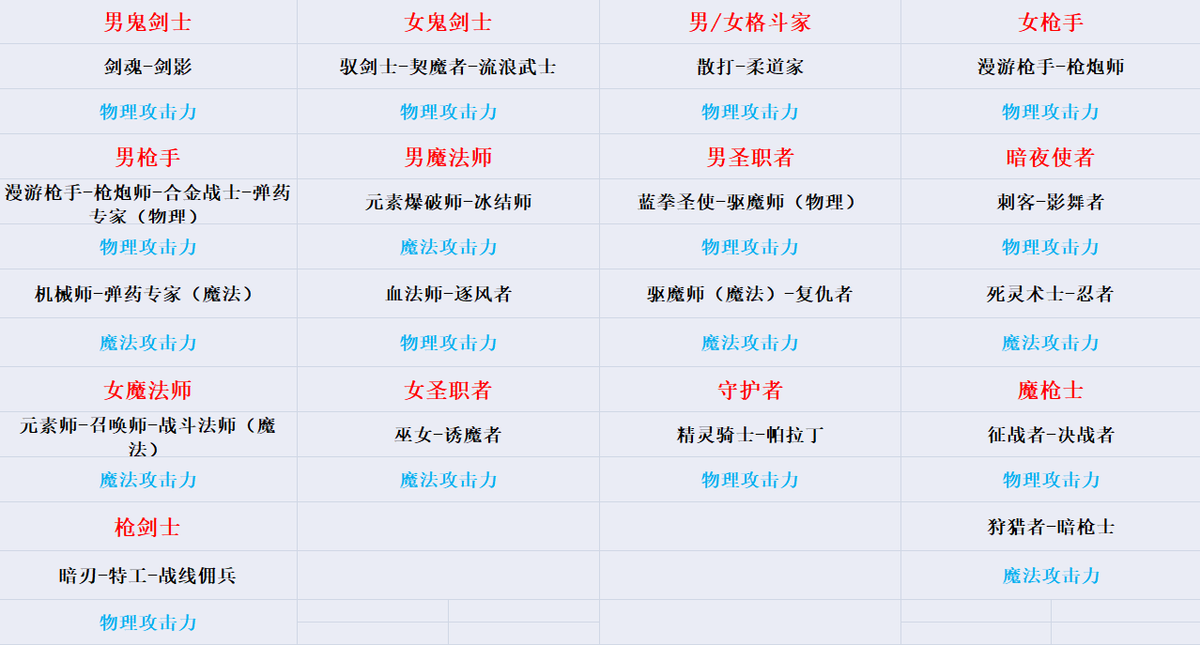 小伙伴们如果想节约转职之后的打造成本,可以根据上图进行职业转职,这样部分重要细节是不需要做出更改的。笔者也会推荐一些自己觉得有趣的职业给小伙伴们选择。