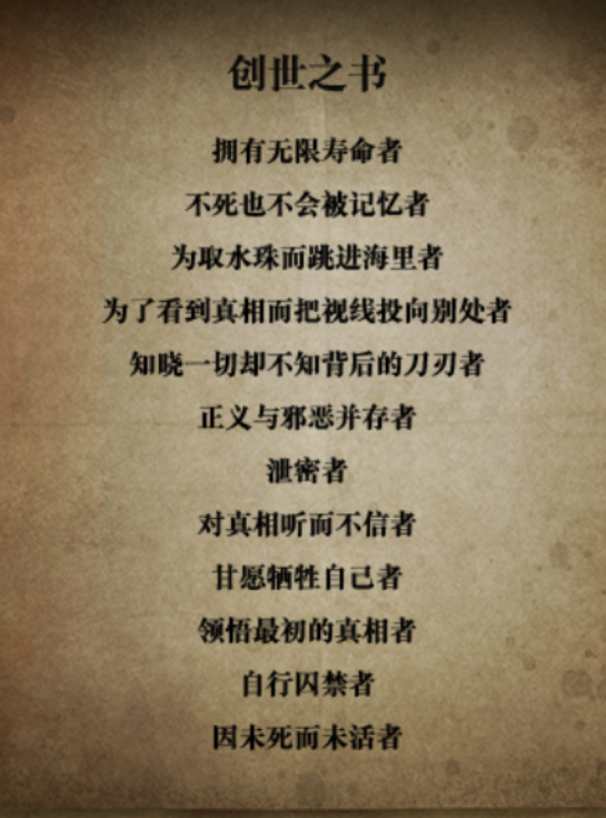 在最近的小游戏创世之书中则对使徒的称呼有了新的变化,整个小游戏共12关暗示除二姐之外的12使徒,也对应了《创世纪》中在二姐“前身”为创造新世纪挑选出来的十二太初神。