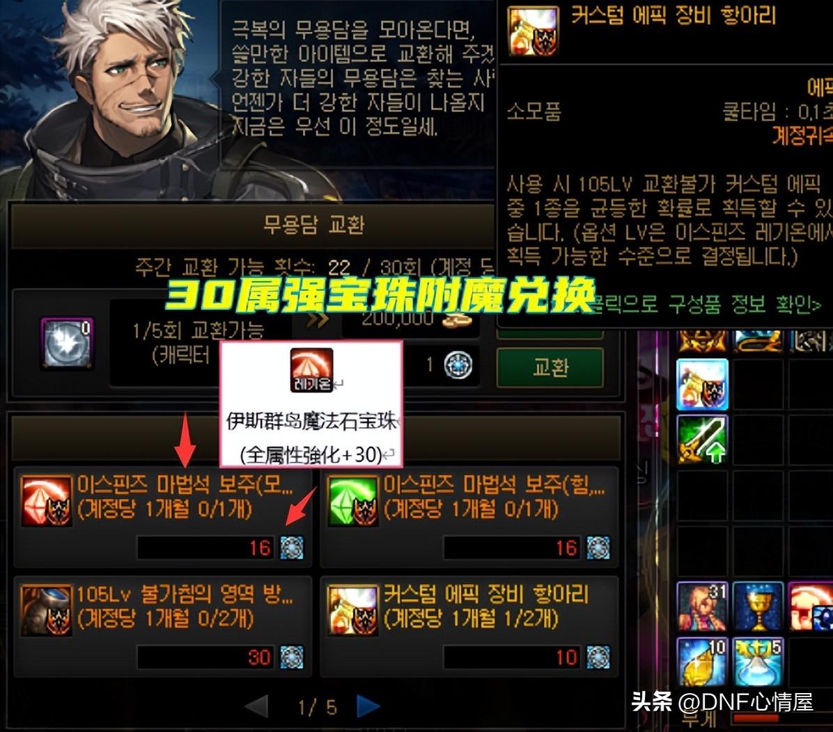 其中右槽这个部位,存在30点全属强宝珠,只要16个“克服的信物”材料。在寂静城、机械战神实验室和军团地下城版本,右槽没出新的宝珠,30点仍旧是完美顶级毕业。该宝珠100级版本奥兹玛竞拍产出,拍卖行无法交易,“尹明镇”放入军团本兑换,给回归或才入坑的玩家,提供了便捷途径。