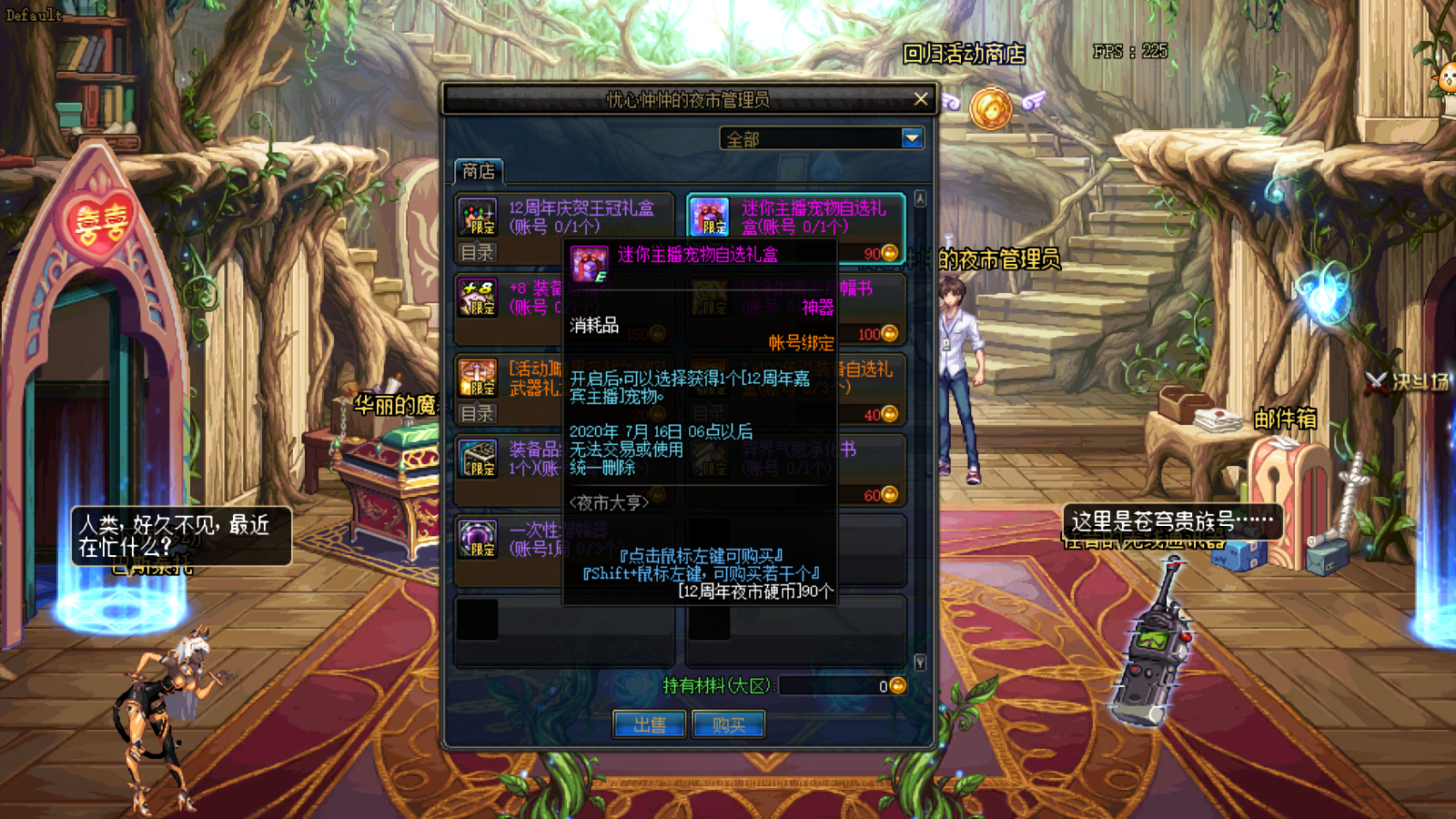 12周年的宠物礼盒是限制一个帐号兑换一次,也就是如果玩家兑换的不是自己想要的宠物,那么就会非常的可惜,因为周年庆的宠物都是限定类型的,对于DNF主播来说,旭旭宝宝是大部分玩家喜爱的头部主播,所以这部分玩家一定会将旭旭宝宝的迷你宠物弄到手,然后刷图套猴,但因为当前兑换商店中对三个主播的形象都没有进行暗示,我们只能从颜色上进行区分。