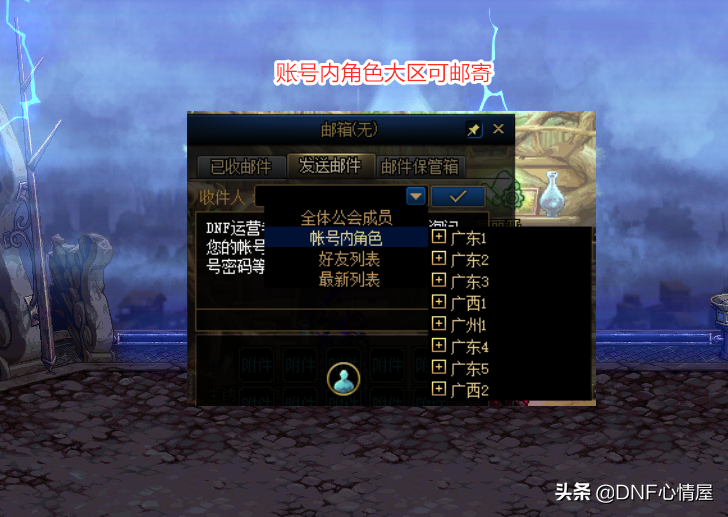 众所周知,狂人在跨一大区,由于金币上限的苦恼,在各个分区中,创建了小号角色,用来买+12装备增幅券。买下了之后,+12增幅券变账绑,但在邮件“账号内角色”处,能够进行邮寄,这是最关键的地方。跨一有8个大区,每个创建小号,都会有12E上限可挥霍,对神豪玩家来说,实在太舒服了。