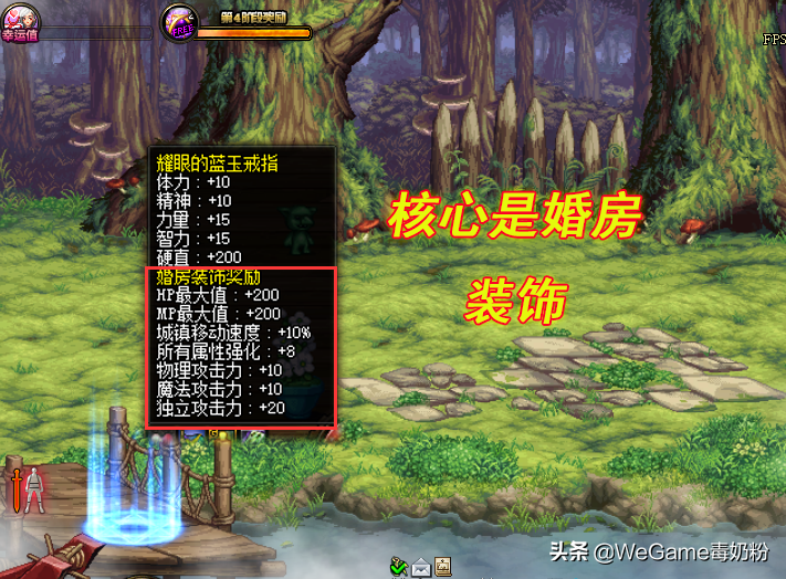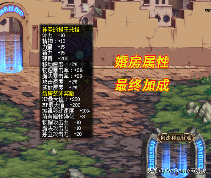 婚房属性有多强?虽然不增加名望,但增加海量蚊子腿属性!最终完美的婚房加成如下图所示,10~15点四维、8点属强、10~20的三攻、2%三攻与暴击等等,还有10%的移速呢。