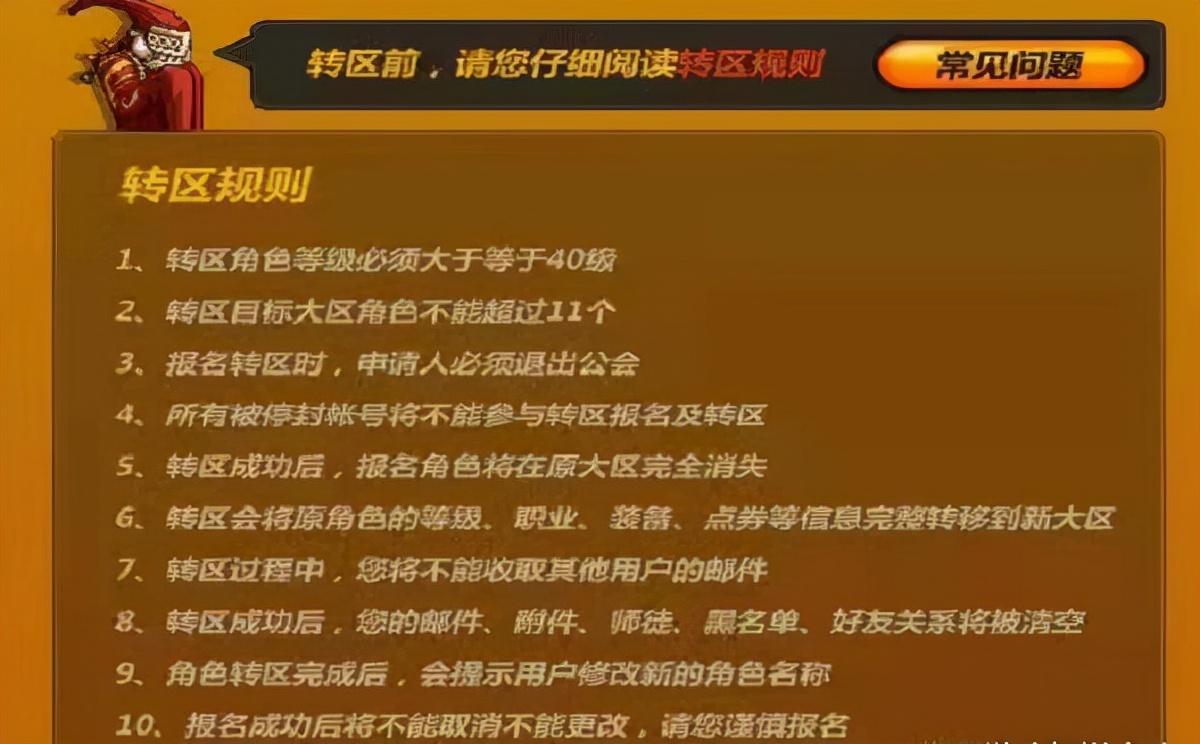 而第2条规则为转区目标大区角色不能超过11个。只有这样才能保证其他玩家的合理权益,同样想要转区也并不是可以立即实现的。因为需要等到转区活动期间才可以,而活动期间内没有开放想要转地区那么就不会成功。