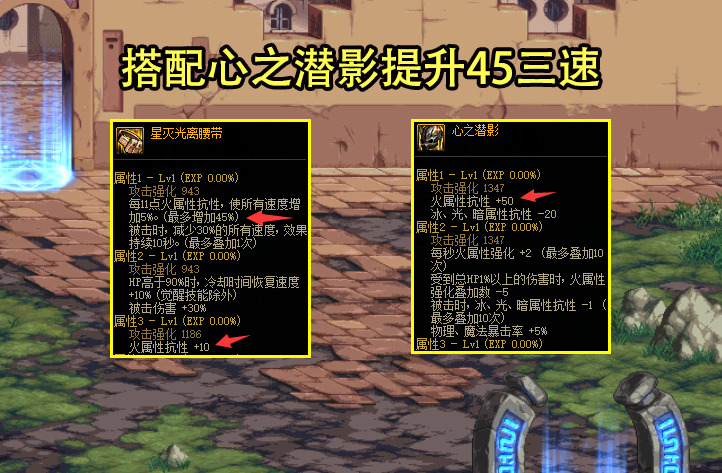 腰带推荐星灭光离腰带,每11点火抗可增加5%,最高达到99点可提升45%三速,面对火抗要求这么高,左槽可搭配一个+50火抗的心之潜影,正好可以触发45%三速,就算被被击也能提升15三速,简直美滋滋。