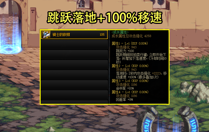 手镯推荐骑士的救赎,跳跃落地时增加100%的移速,持续2秒!项链推荐骑士的赎罪,前冲时间越长久,加的移速越多,最高前冲4秒+20%移动速度。戒指推荐双音戒指,捡黑球最高增加24攻速、36%施放,还有30%的技能CD恢复速度。