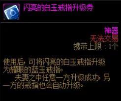 在婚戒方面,我们只需要达到闪亮的白玉戒指品级就可以拿到主要的属性加成了,至于那些少量的三速与暴击加成,对于伤害提升都不是很显著了,性价比很低。