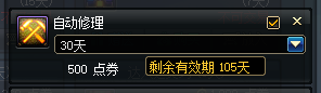 无论任何玩家,对于当前DNF来说自动修理都是必不可少的。无论什么时候的代币券,遇事不决自动修理准没错。保底7777代币共可买266天自动修理(剩177代币),可以用9个月之久!