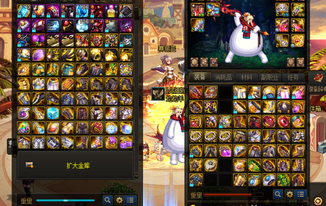 对于不少小伙伴们(特别是刚刚回归、新加入阿拉德不久),低阶仓库很容易被当前的各类装备、道具塞满(即使没满也可以未雨绸缪),此时分解/丢弃的话又怕以后有用或有纪念价值,不分解/丢弃的话又塞满了没地方放。此时,选择在周年庆升级一波金库也是不错的选择。