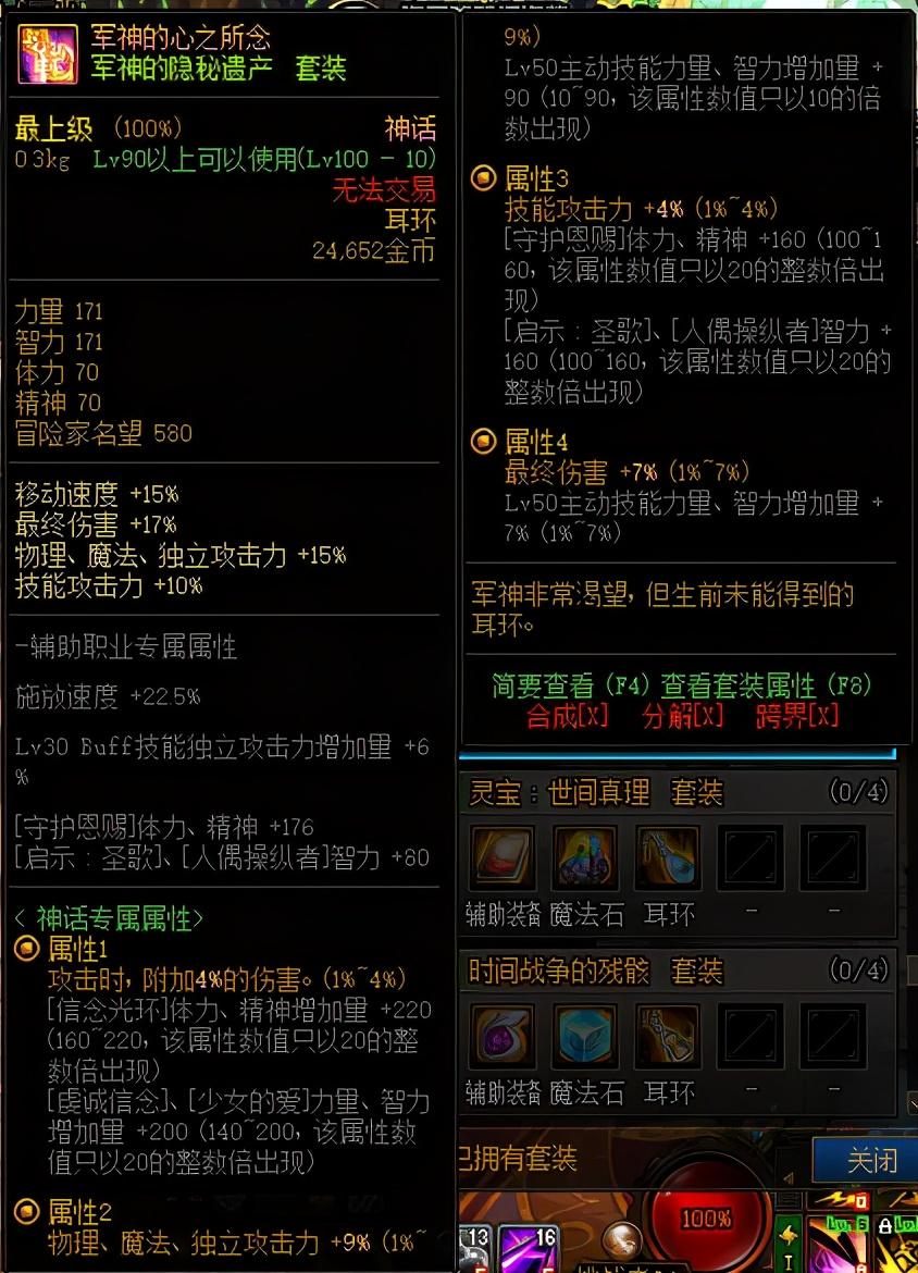 (2)百级史诗套不仅有传统的533套装(5件防具+3件首饰+3件特殊装备),还存在二、三件套的套装,玩家既可以选择传统的533搭配,也可以灵活使用3332搭配。