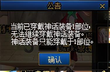 (1)每套史诗套均有一件对应的神话装备,神话装备基础词条与对应史诗相似,部分神话有优化效果,且拥有神话专属词条加成,神话装备全身只能佩戴一件,且佩戴后换装也不可以再添加神话。