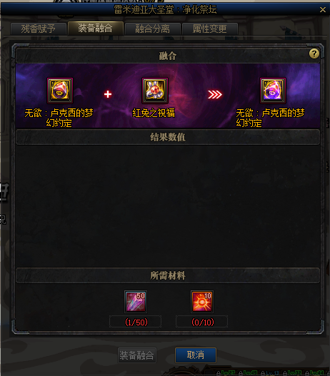 另外,融合装备可通过分离重新分离成史诗装备+融合装备,分离不消耗材料。