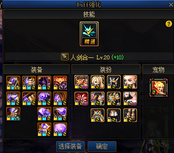 堆等级的手段包括登记换装称号(每年耕耘礼包内的技能等级称号),换装时装上衣(高级装扮以上可选Buff技能),左右槽的白金徽章(白金徽章打在换装的装备上),技能宝珠(每年新春礼包、金秋礼包产出,包含肩膀腰带和鞋),光环宠物等。