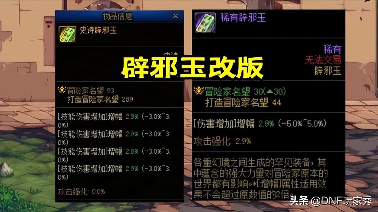 【6】“黄字、爆伤、白字、三攻、最终、力智、光属白字、暗属白字、火属白字、冰属白字”辟邪玉,全部对应新增同数值的“攻击强化”词条,而且全部整合在一起加算。