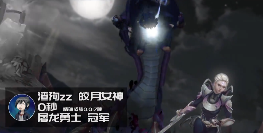 皎月女神黛安娜,0.017秒,仅有一帧而已,“渣狗zz”获得屠龙勇士比赛冠军!