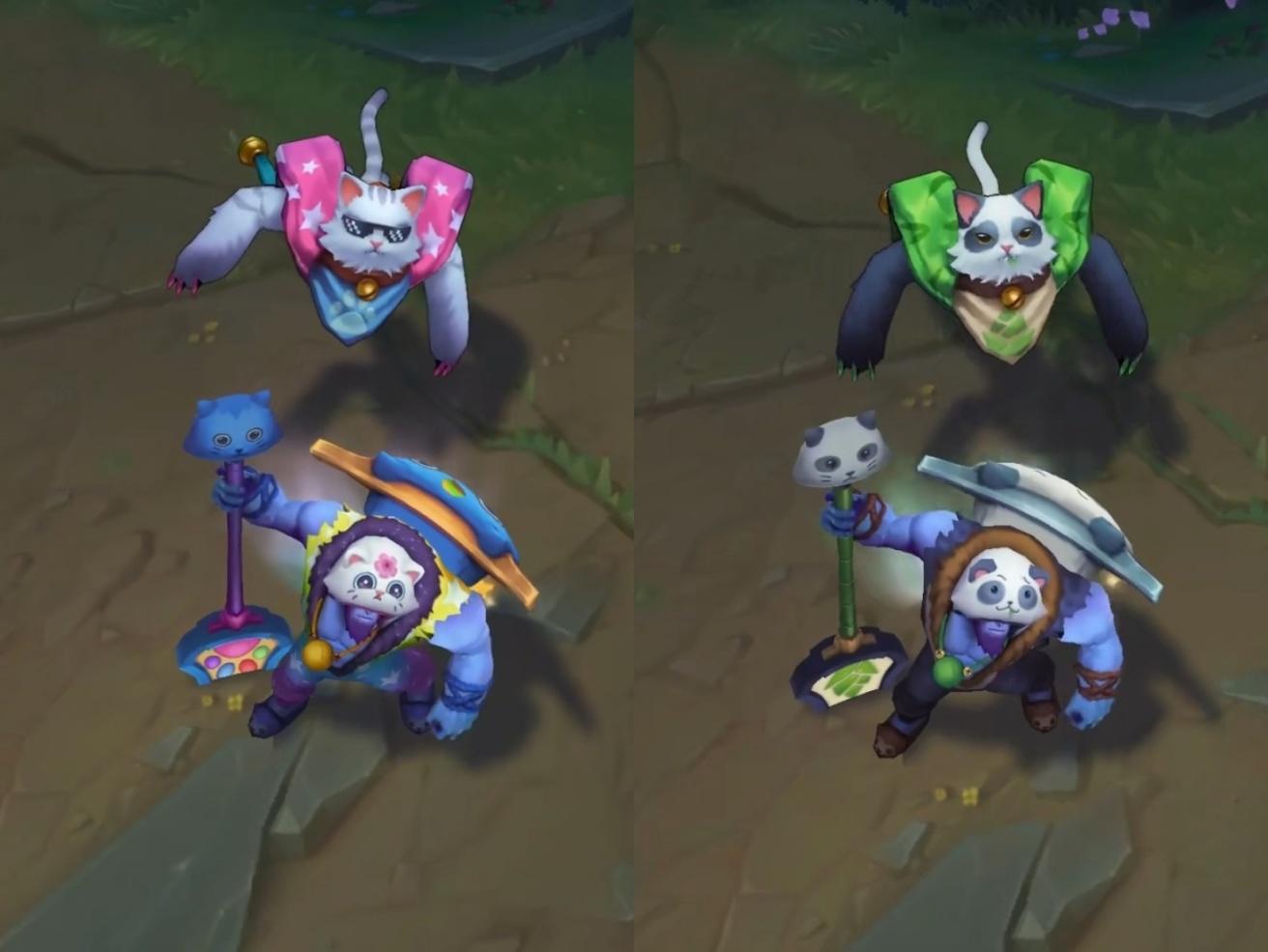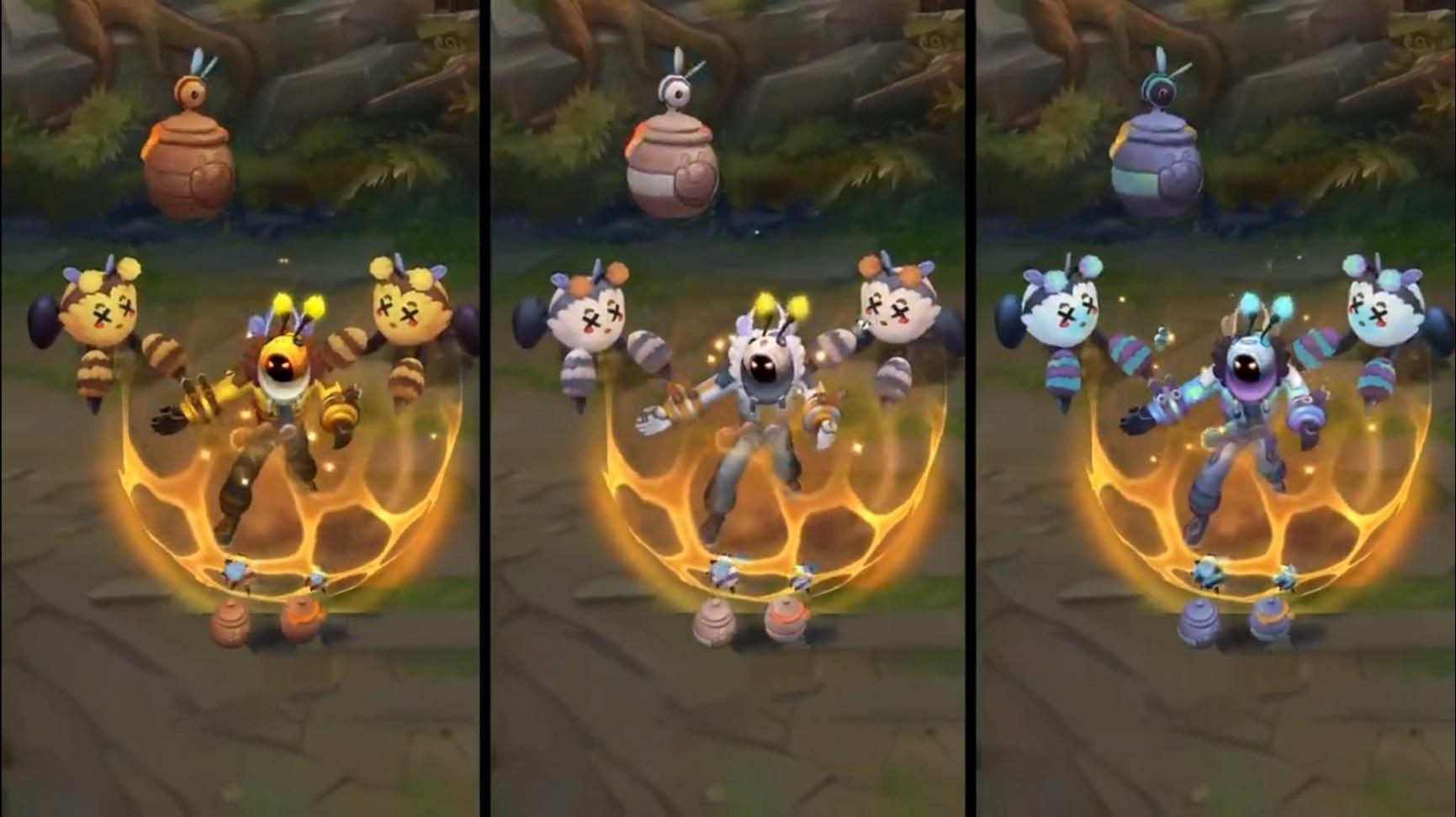 而像小蜜蜂玛尔扎哈、喵里克这种皮肤,换个炫彩就像换了个皮肤一样,召唤物颜色都会跟着本体改变,甚至像喵里克这种还有造型的变化,属于精品级别了。