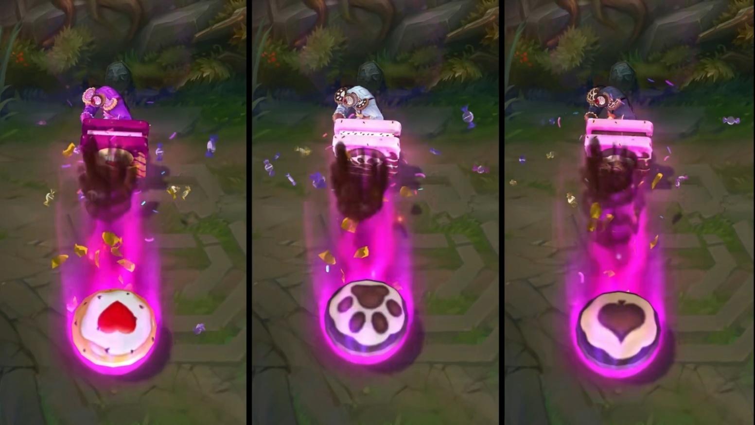例如糖果大战的炸弹人和布隆,布隆的q技能和炸弹人的各个技能都会有不同的糖果点心特效,改动还是蛮大的。