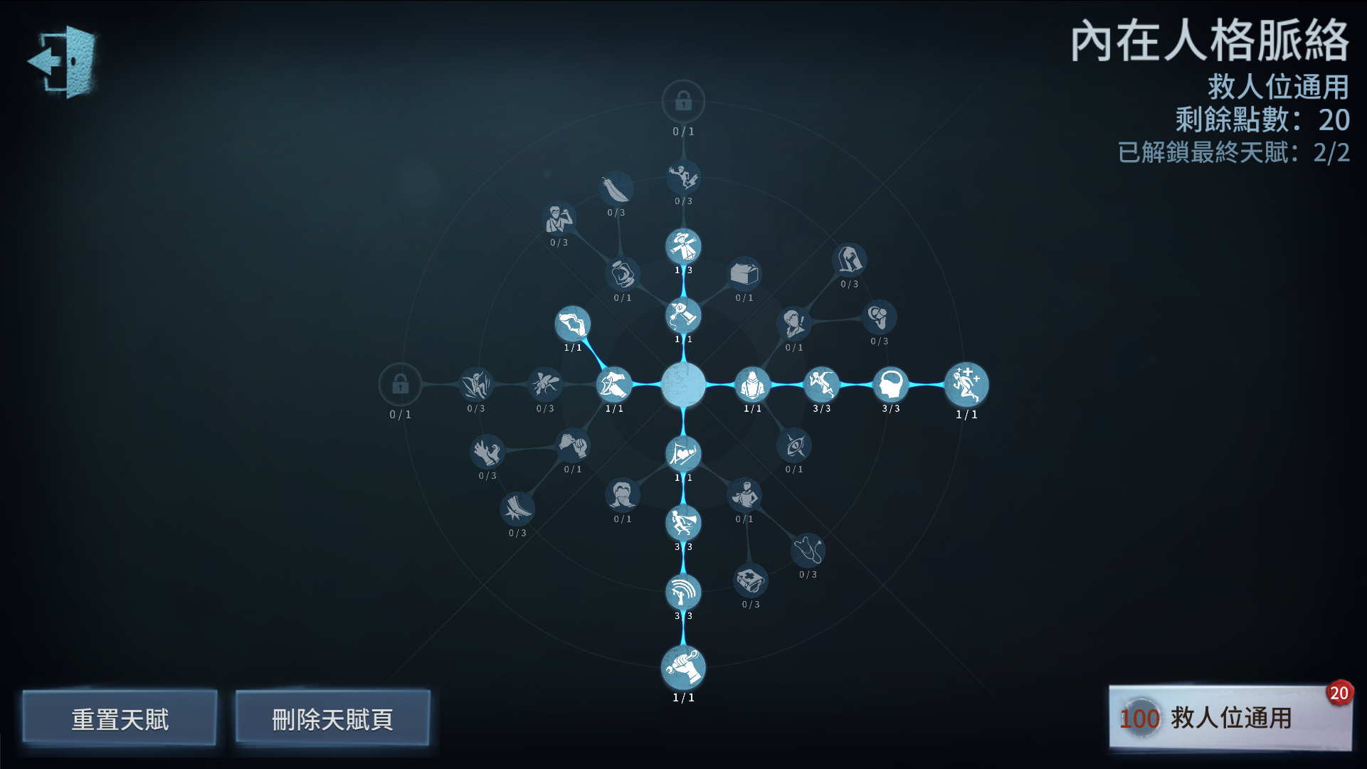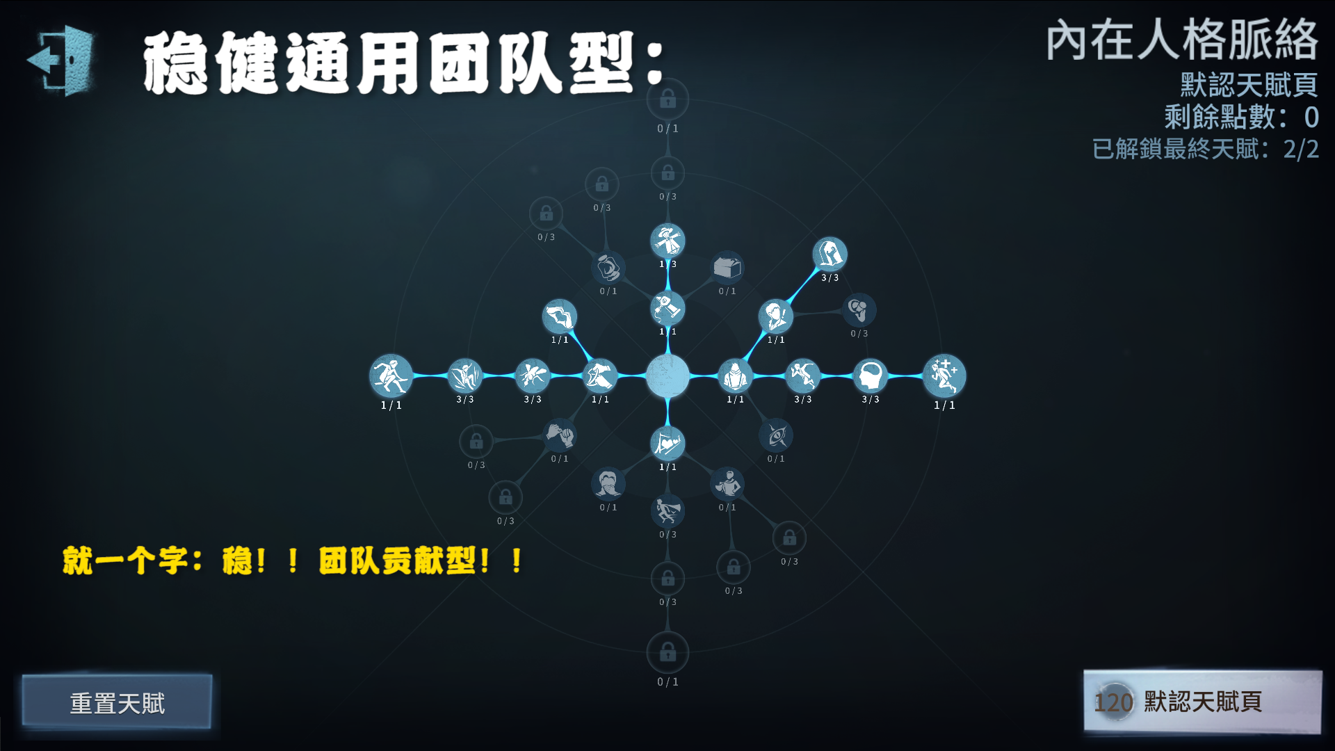像救人位的话可以在此基础上,点出化险为夷,也就是大家通常说的搏命!其他位置则可以根据自己实力水平,决定是带双弹还是搏命!(剩余20点看下文)