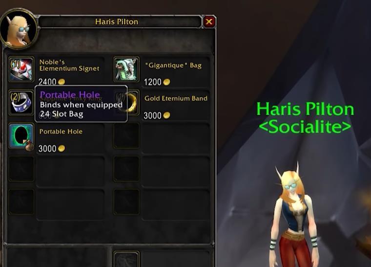 如果玩家的存款很多的话,可以去沙塔斯城购入便携式黑洞,这是一种24格的超大背包,唯一的缺点是有点贵,每个都需要3000金。