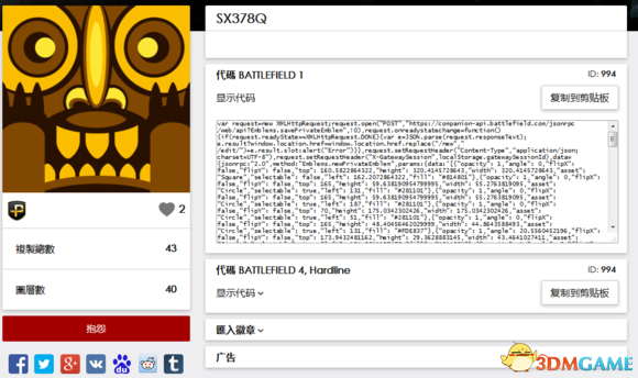 这里拿神庙逃亡参考下,复制BATTLEFIELD 1代码,到图3的界面打开浏览器控制台(亲测火狐谷歌都是F12)