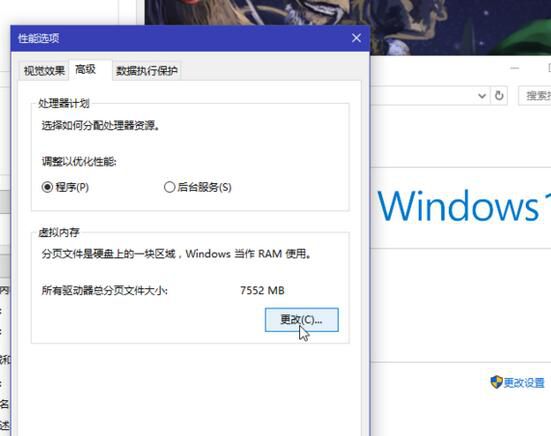 性能选项的高级中可以看见虚拟内存的设置了,点进去