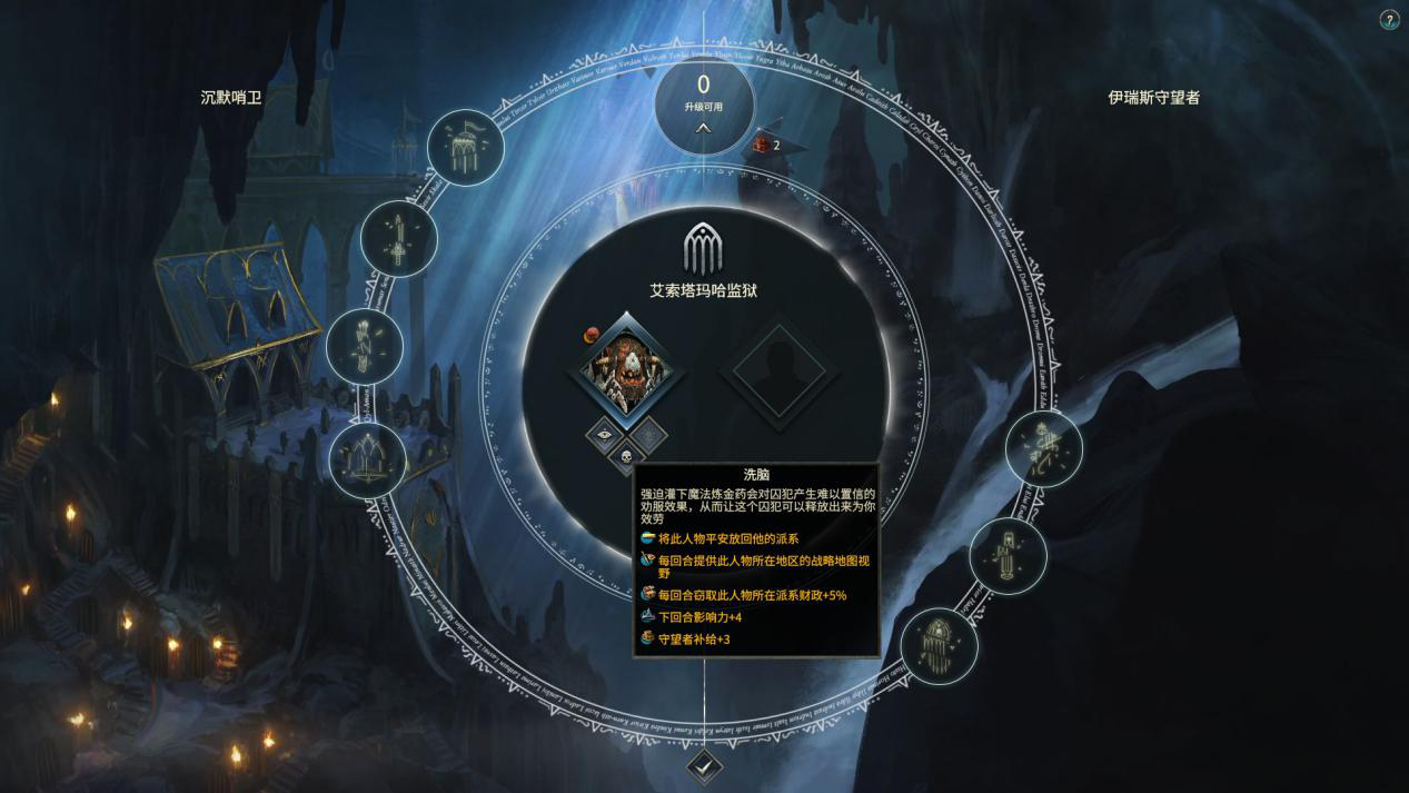 而另一方面则是,由于艾萨里昂的主要战场在异国的沙漠,他的高等精灵势力就不会受到大漩涡对“精灵派系”的影响,算是帮玩家省了点心,那么监狱的建设进度就是艾萨里昂防卫本土的最有效手段。