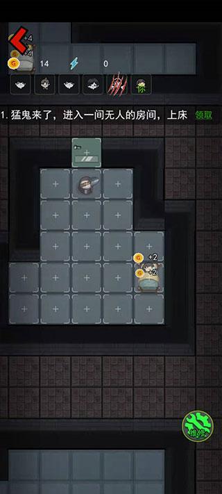 2、进入房间后直接上床,通过睡觉涨金币,建造装备,无论发生什么事千万不能下床,如果有坏人破门而入,也不要下床。