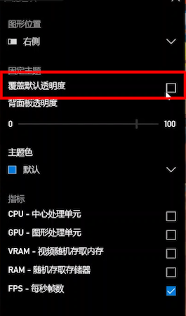 选择左侧“每秒帧数计数器”,打开计数器,并选择想要在屏幕中显示帧数的位置。