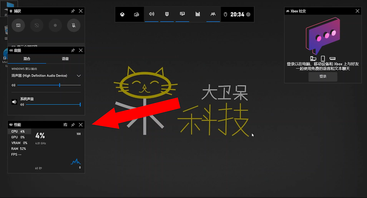 这个功能要想使用非常简单!按一下你键盘上的“Win+G”,看看出现了什么?