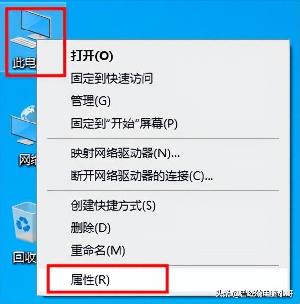 方法一:桌面找到此电脑图标→鼠标右键点击属性即可