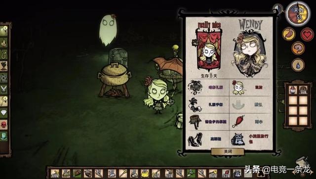 温蒂拥有一个阿比盖尔之花,这朵花会在开放时召唤出阿比盖尔(温蒂的亲姐姐,地震中与其父母一样不幸遇难)。阿比盖尔简直bug,非常推荐萌新使用,姐姐解决一切不是吹的,就是小心点猪人,在初期主要做护甲来保证没有姐姐时能活下来,有姐姐后站在后排远程输出(回旋镖),后期再主要近战输出(远程威力不够了)。